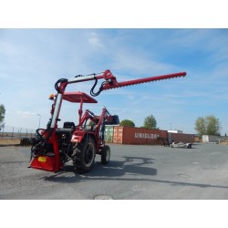 Taille haie hydraulique pour tracteur de 25 à 50 CV, conçu pour élaguer et tailler les haies, les arbres, les fossés grâce à son lamier de 1,90 m. La hauteur de coupe maximale peut atteindre 5,20 m et 2.8 m à plat avec un diamètre de 2 cm de taillage. Le taille haie fonctionne sur les prises hydrauliques du tracteur, il est mis en mouvement avec une commande par téléflexible sur le tracteur. Il dispose d'une pompe et d'un réservoir d'huile hydraulique indépendants. Appareil livré avec son cardan.